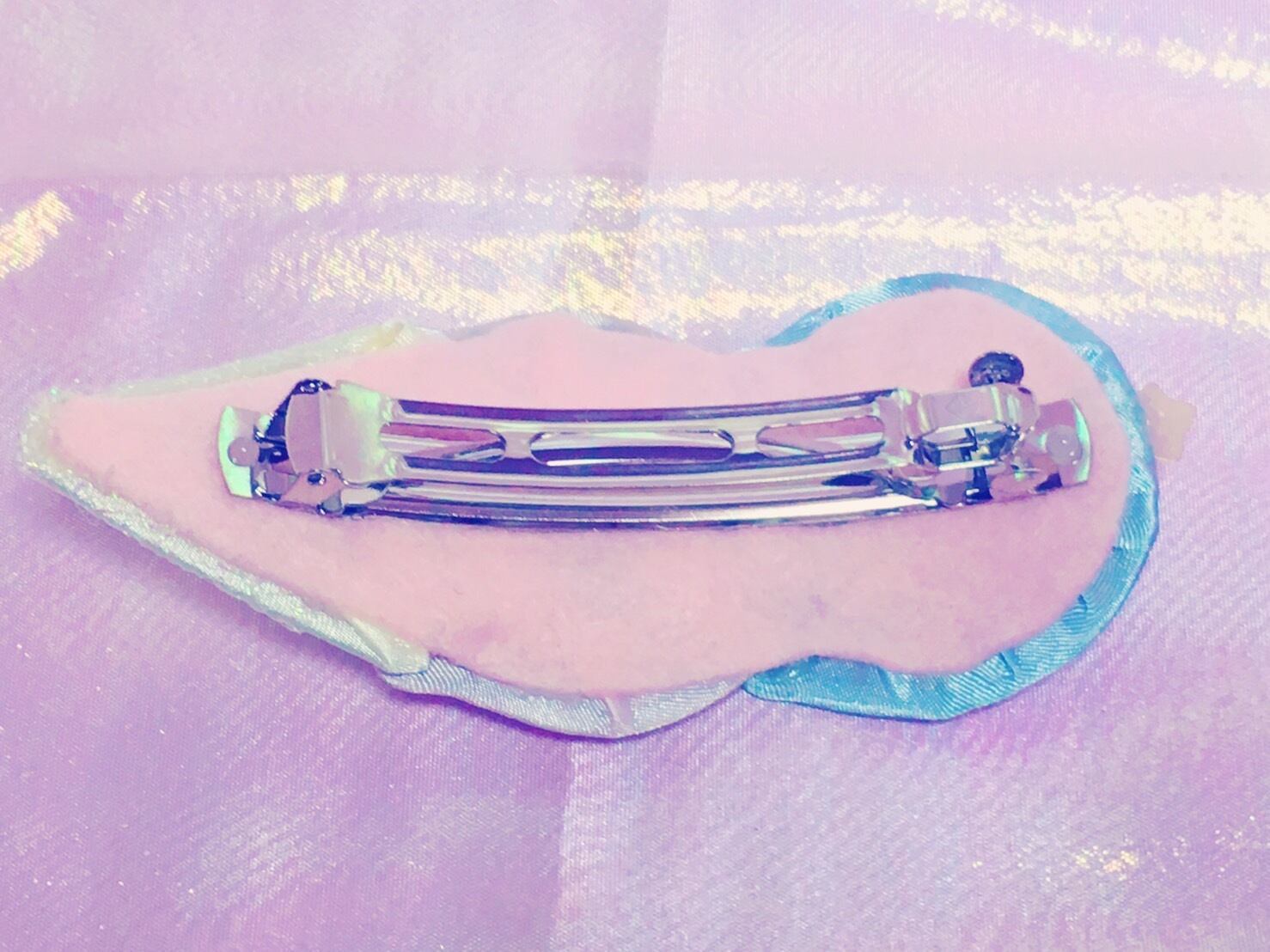 サテンの控えめな光沢がかわいいインパクト大なおおきめなバレッタです♡ 全長約12.5㎝(一番長い部分を計測) ♡ハンドメイド商品ですので作りの粗さ、バラつきがあること、製品のような完品では無い事をご了承の上ご購入お願いいたします。